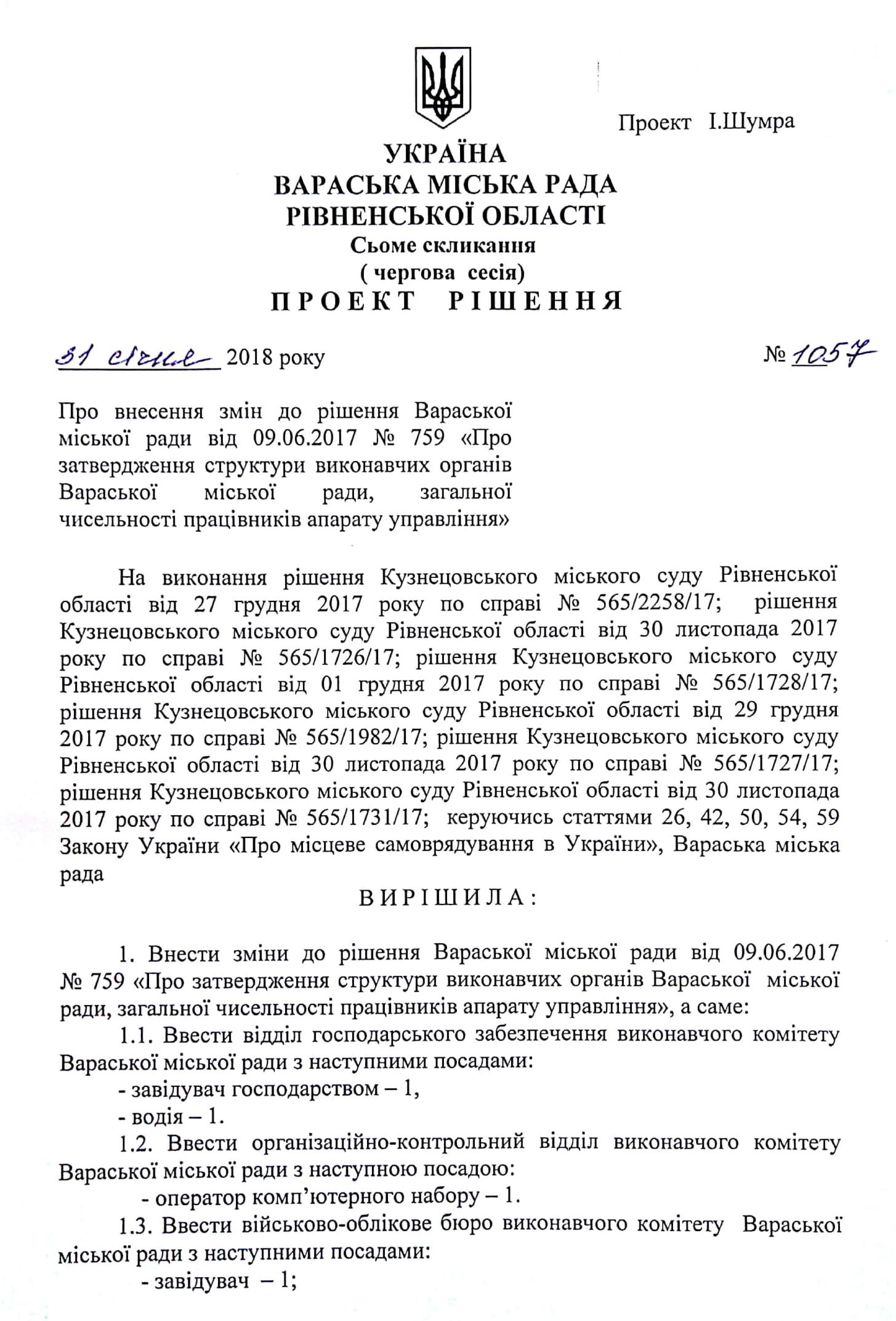| Про внесення змін до рішення Вараської міської ради від 09.06.2017 №759 |