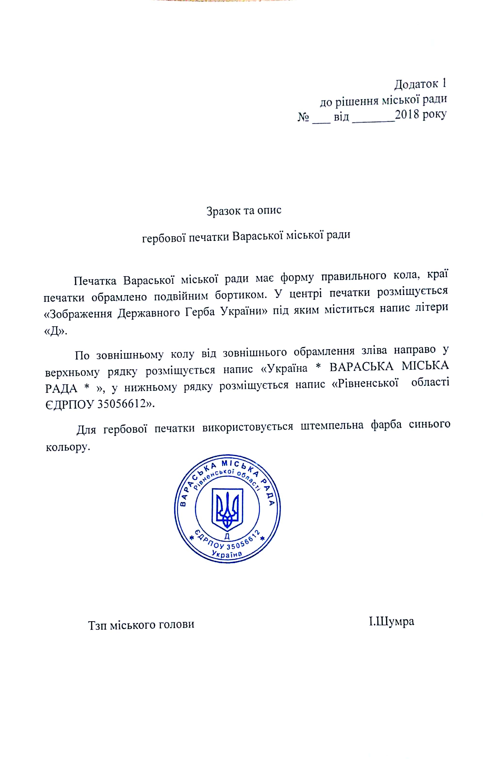 | Про затвердження зразку, опису печатки Вараської міської ради |